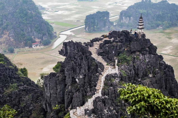 Mua Cave, also known as Hang Mua, is a popular tourist attraction located in Ninh Binh Province, Vietnam. It is situated at the foot of Mua Mountain, offering stunning panoramic views of the surrounding landscape. To reach the top of the mountain and enjoy the breathtaking scenery, visitors have to climb a series of 486 stone steps. At the summit, there is a small temple and an enormous dragon statue, adding to the charm of the place. Mua Cave is a must-visit destination for nature lovers and adventurers seeking unforgettable vistas of the Ninh Binh countryside.